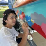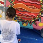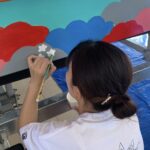 今日はミヤザキさんが描いた下書きに沿って、花と風景に色付けをしました。 全体のバランスを見ながら、ここはピンク、ここは緑、ここは黄色と瞬時に判断がされ1枚1枚丁寧に塗っていきます。