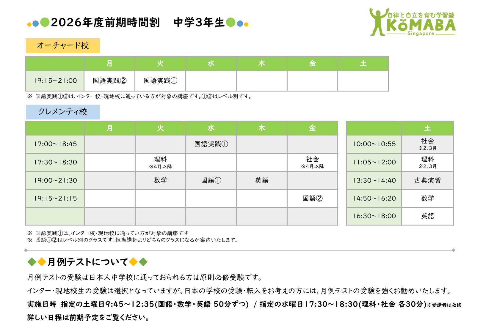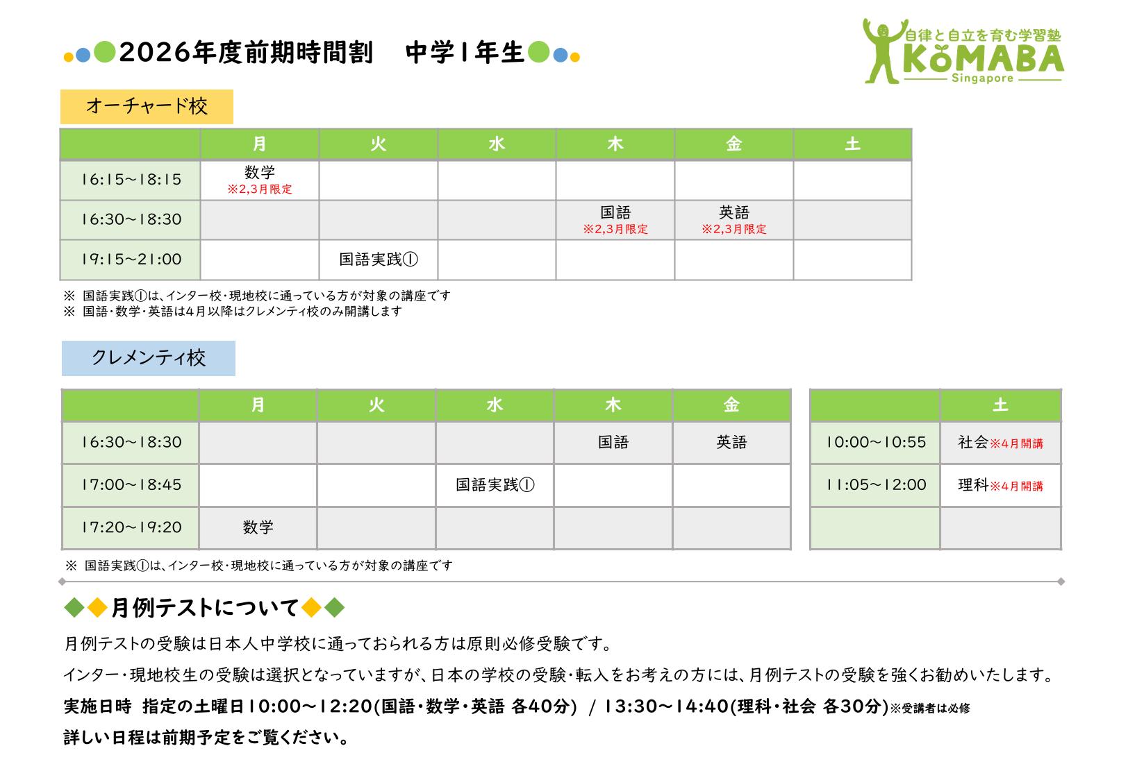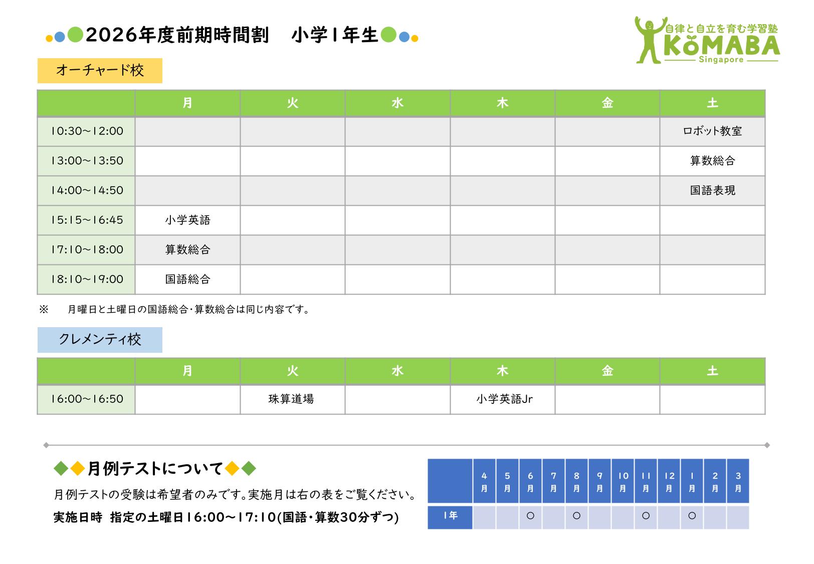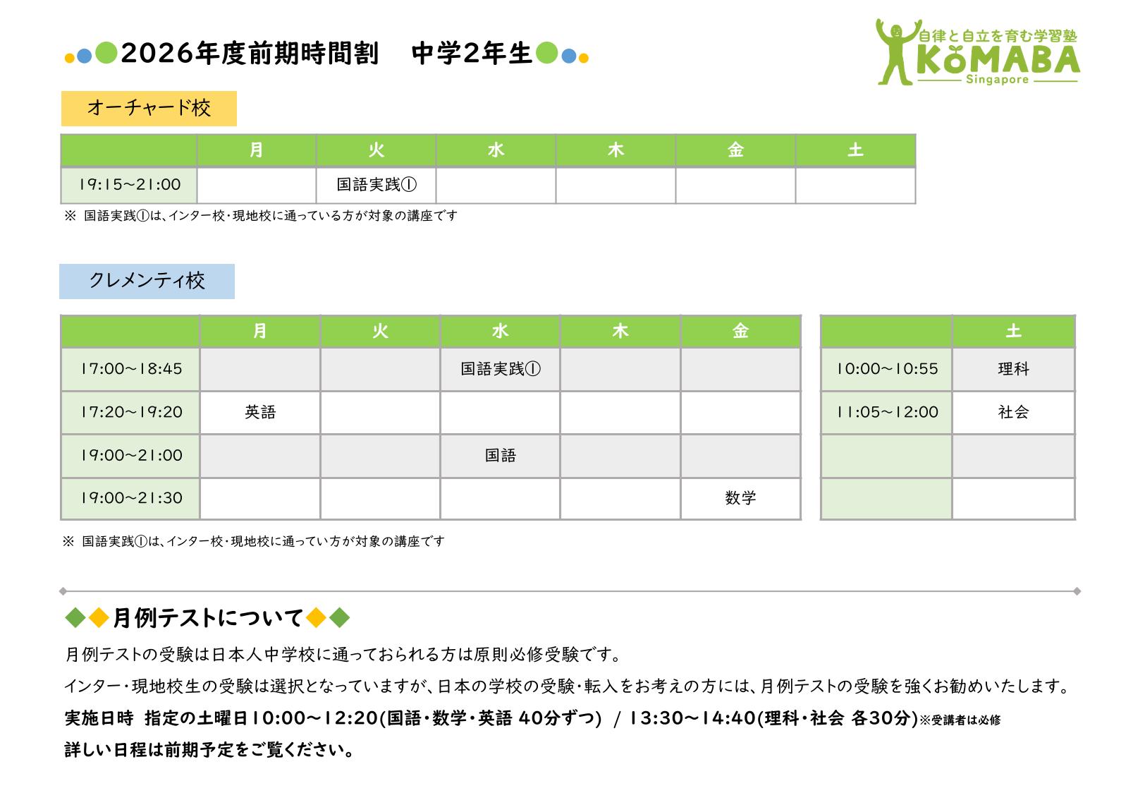 2026年度前期(2026年2月~2026年7月)の時間割です。 2026年1月中の時間割は2025年度後期の時間割をご覧ください。