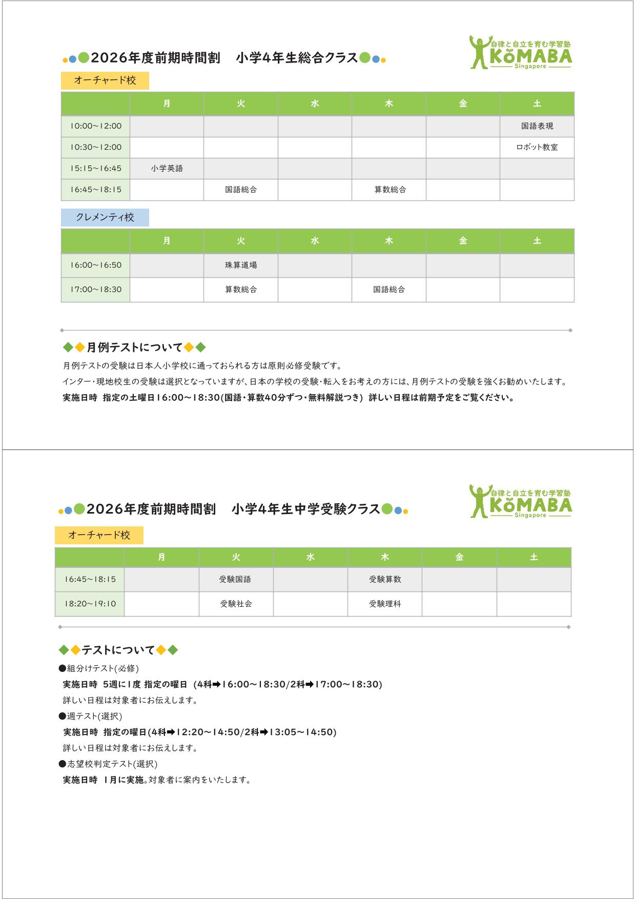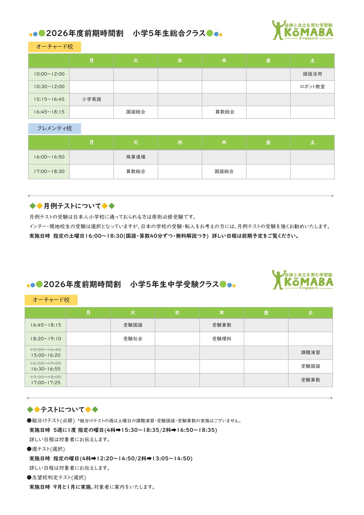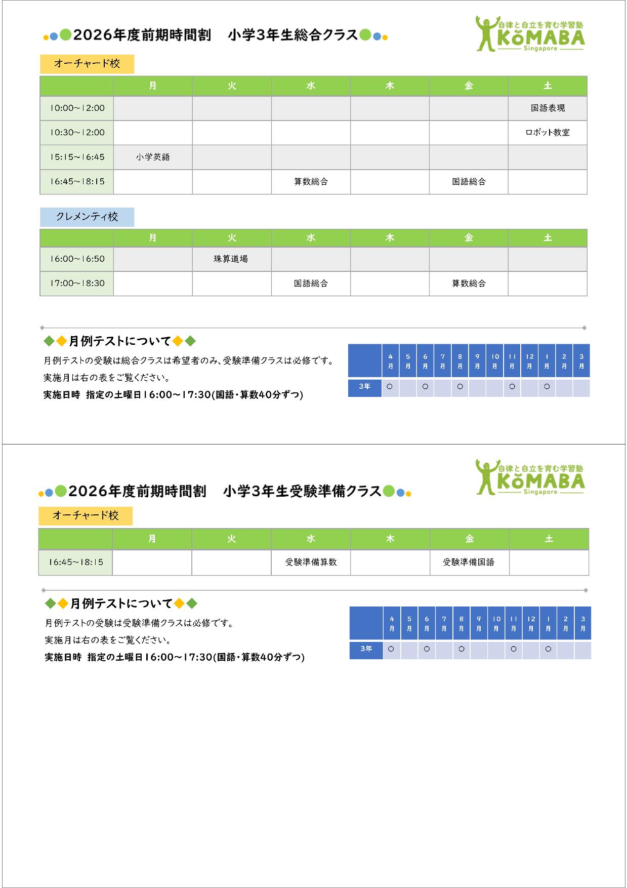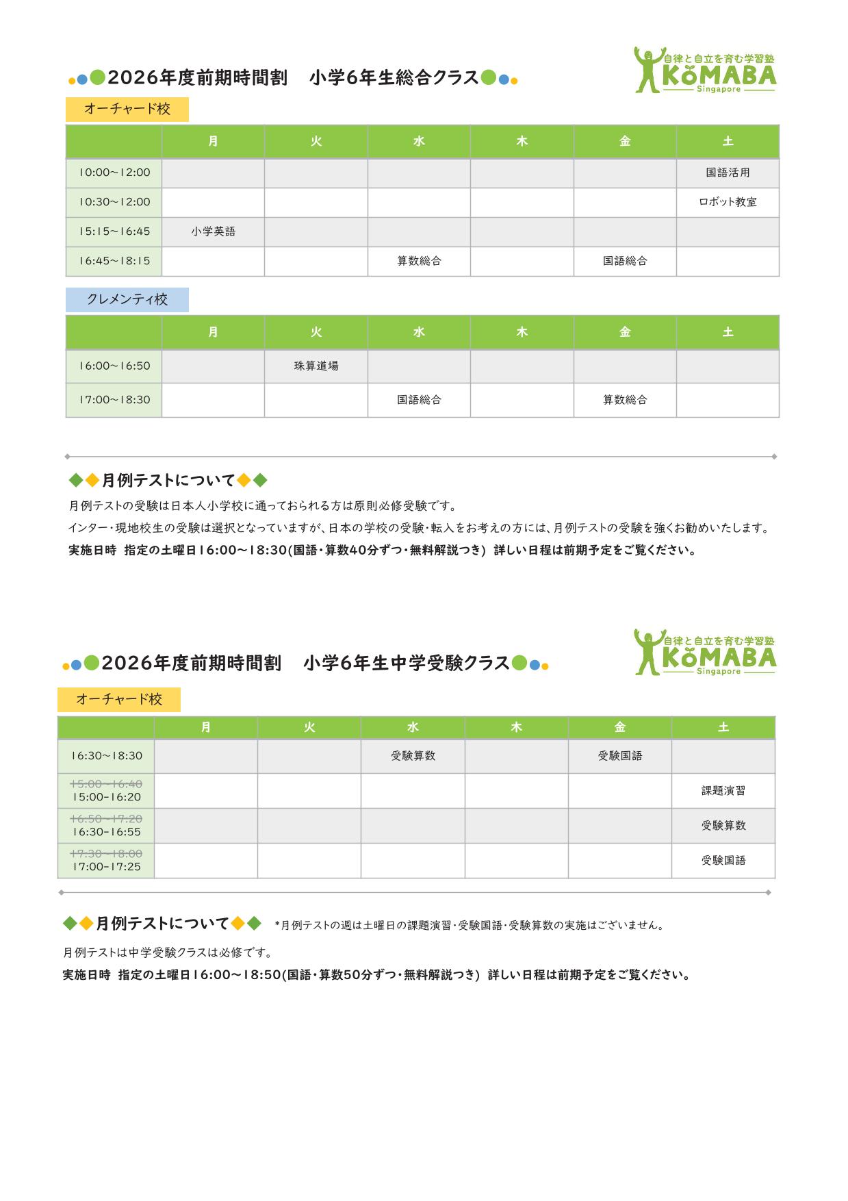 2026年度前期(2026年2月~2026年7月)の時間割です。 2026年1月中の時間割は2025年度後期の時間割をご覧ください。
